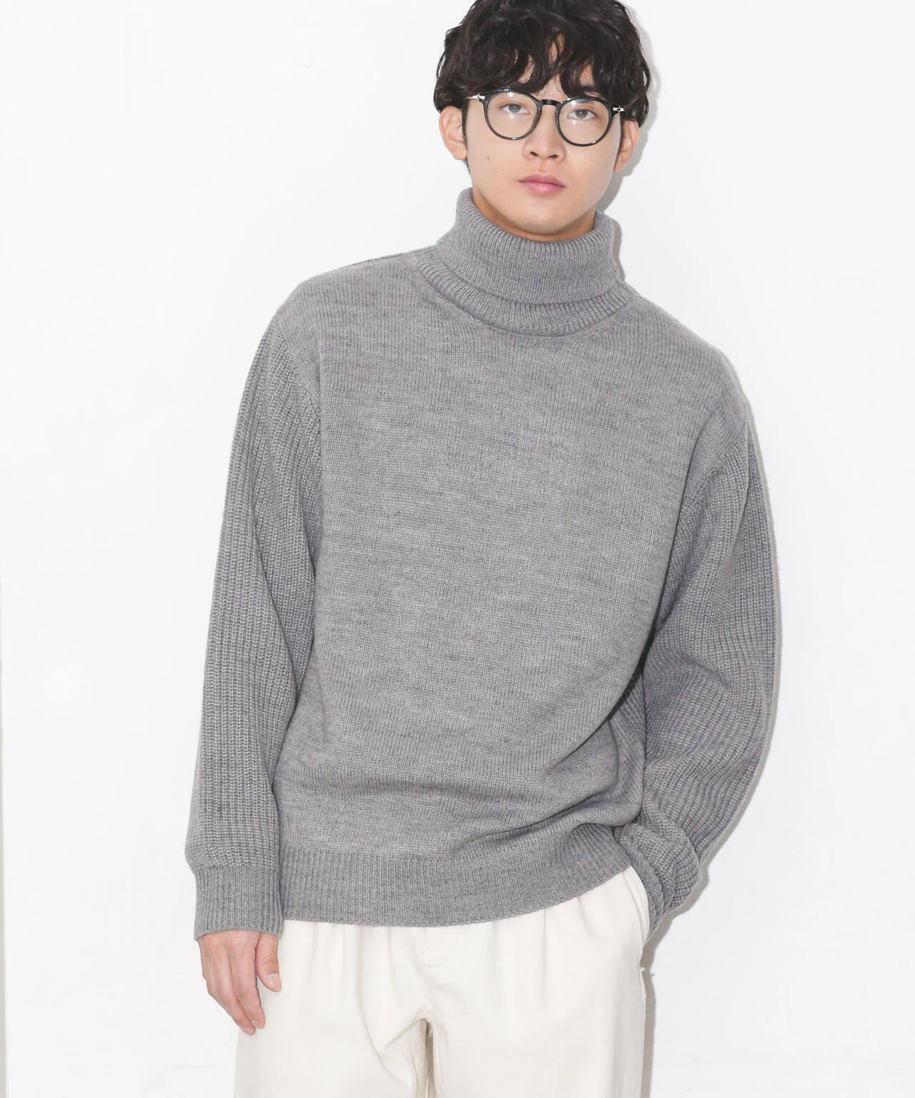 ロングシーズンで着用できる中肉生地を使ったタートルネックニット。ベーシックなデザインながらも、身頃や袖に編柄で変化を付けた拘りの一品。同素材のクルーネックニット、Vネックカーディガンと型違いで揃えても、その日のスタイルや気分に合わせてお楽しみいただけます◎