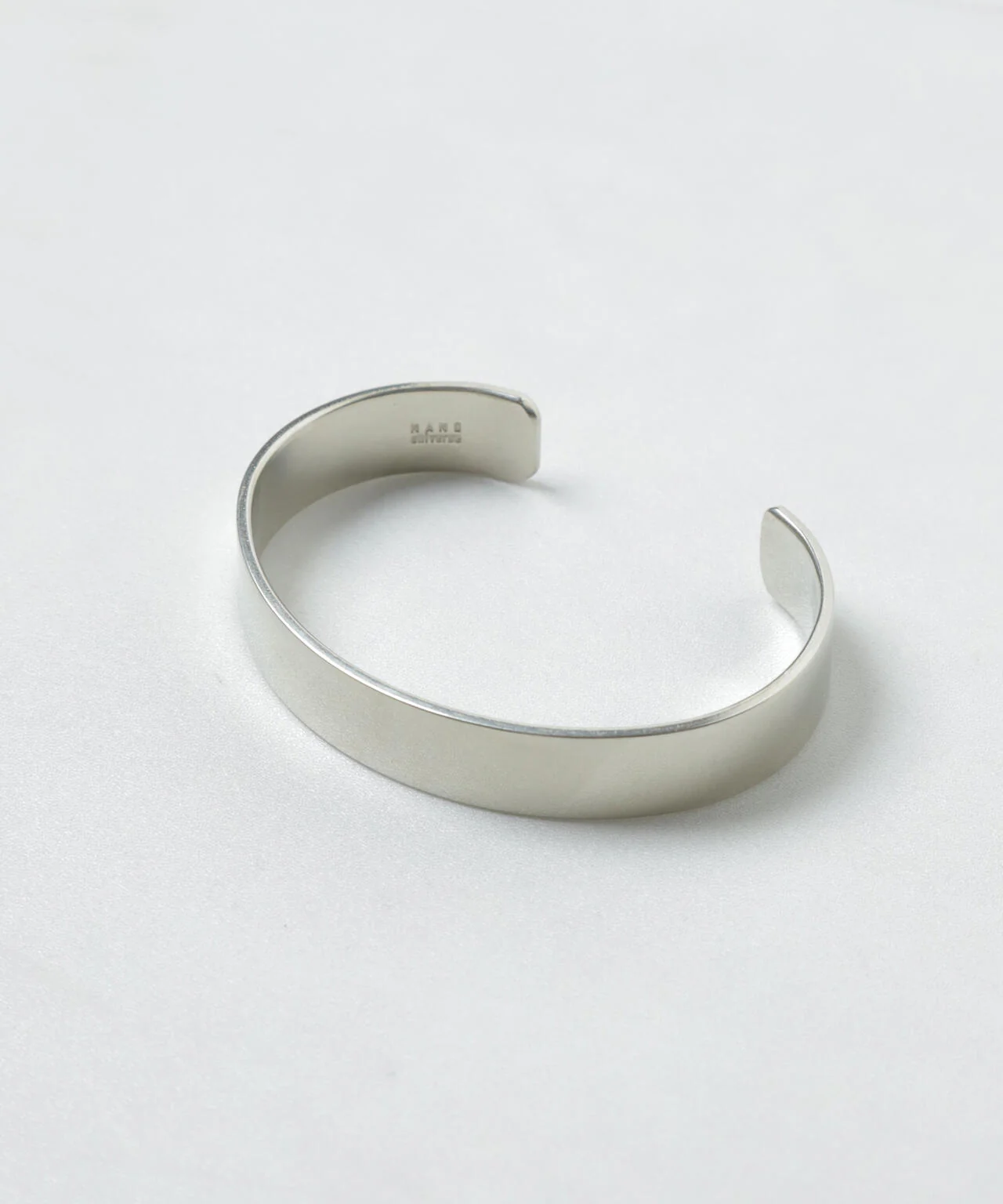 古くから管楽器などに使用される GERMAN SILVER をカットし使いやすい13mm幅のバングルに。