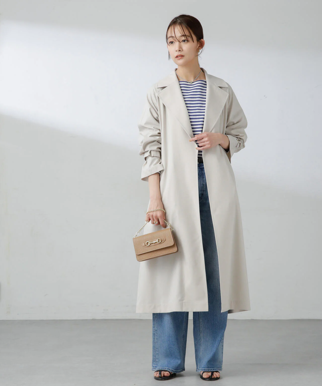 しなやかなドレープ感が魅力のベルテッドコート。フロントは釦レスでベルトをして着るデザインで、今期は背中にタックをとった深めのヨークがポイント。ベルトを絞って袖をぐっと上げる着こなしもオススメ◎。トレンチとはまた違う雰囲気が楽しめるON/OFFで重宝するアイテムです。