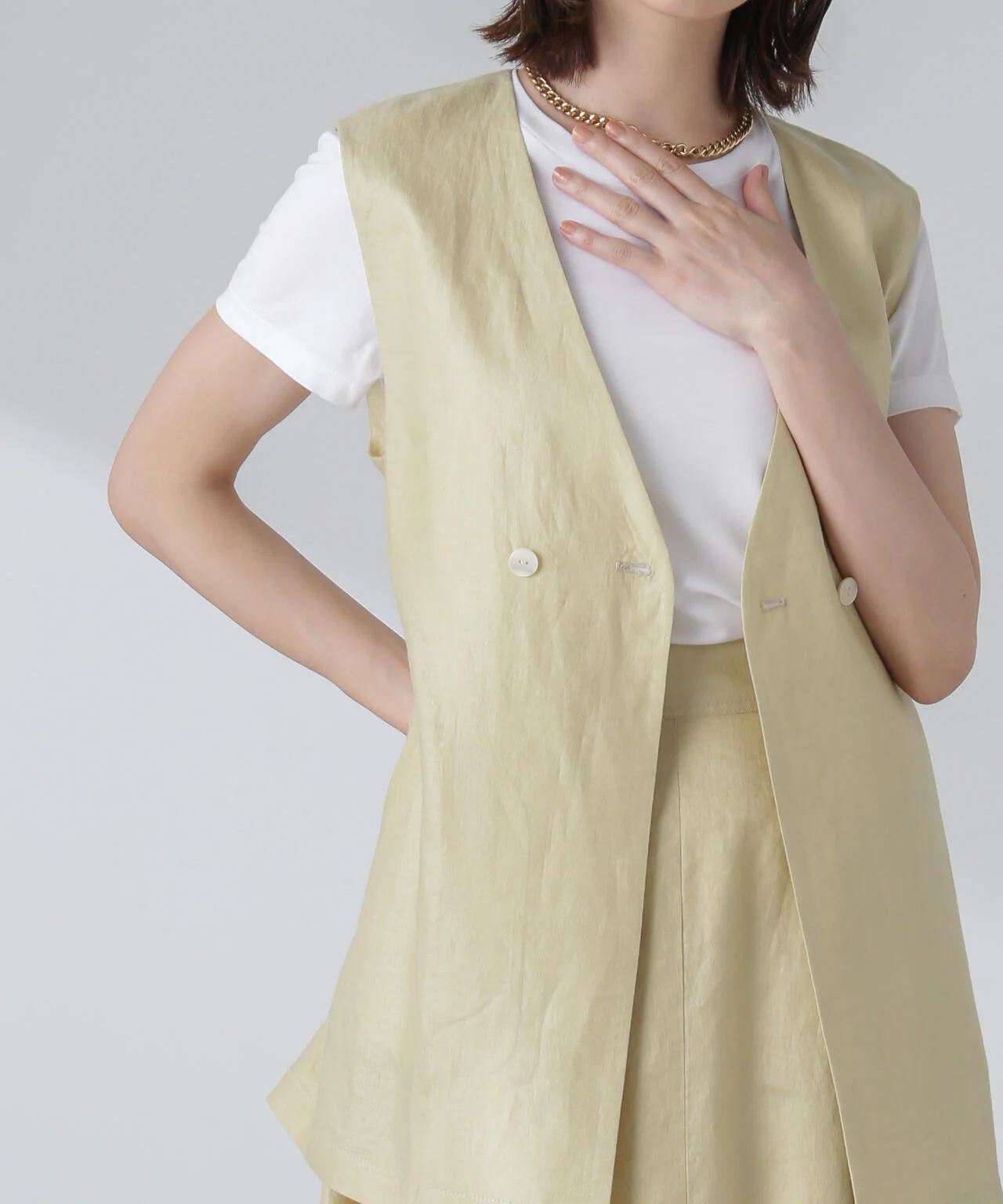 ・さらりと羽織れるミドル丈ジレ