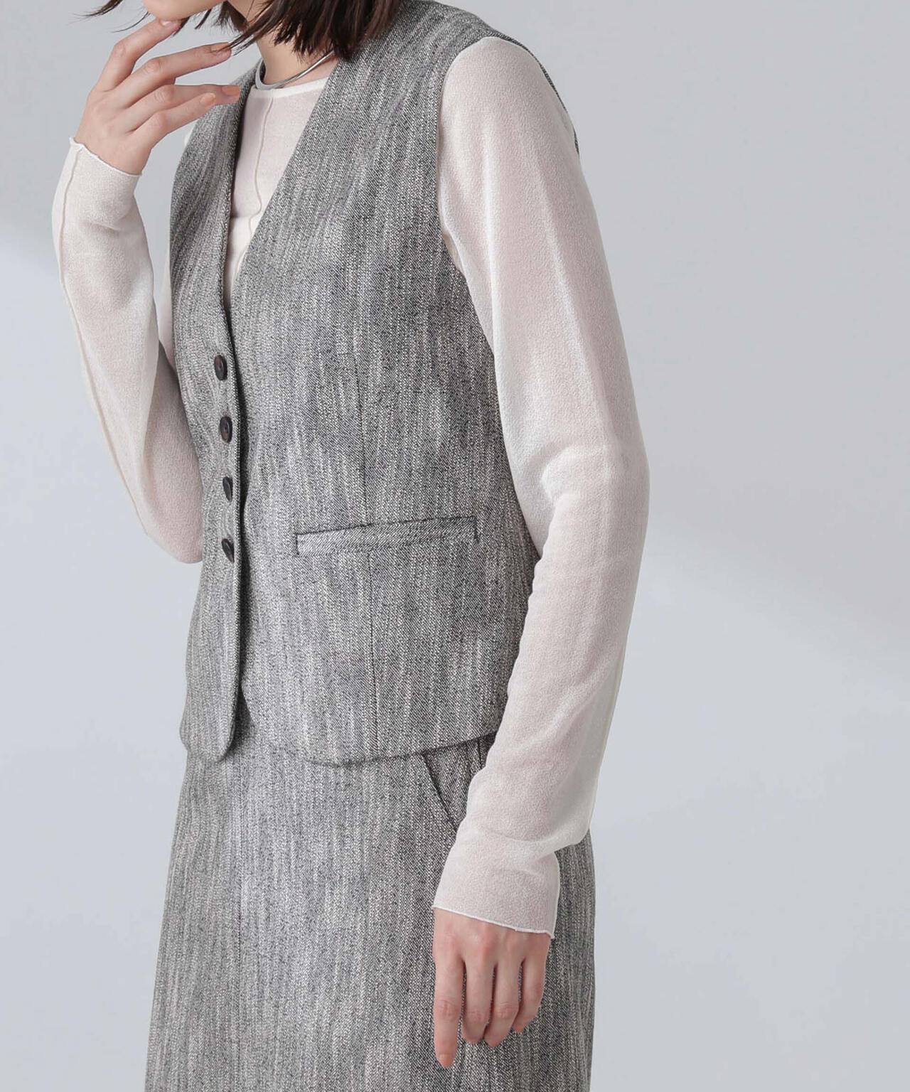 ・メランジスラブのサマーツイードで仕上げたマニッシュなコンパクトジレ
