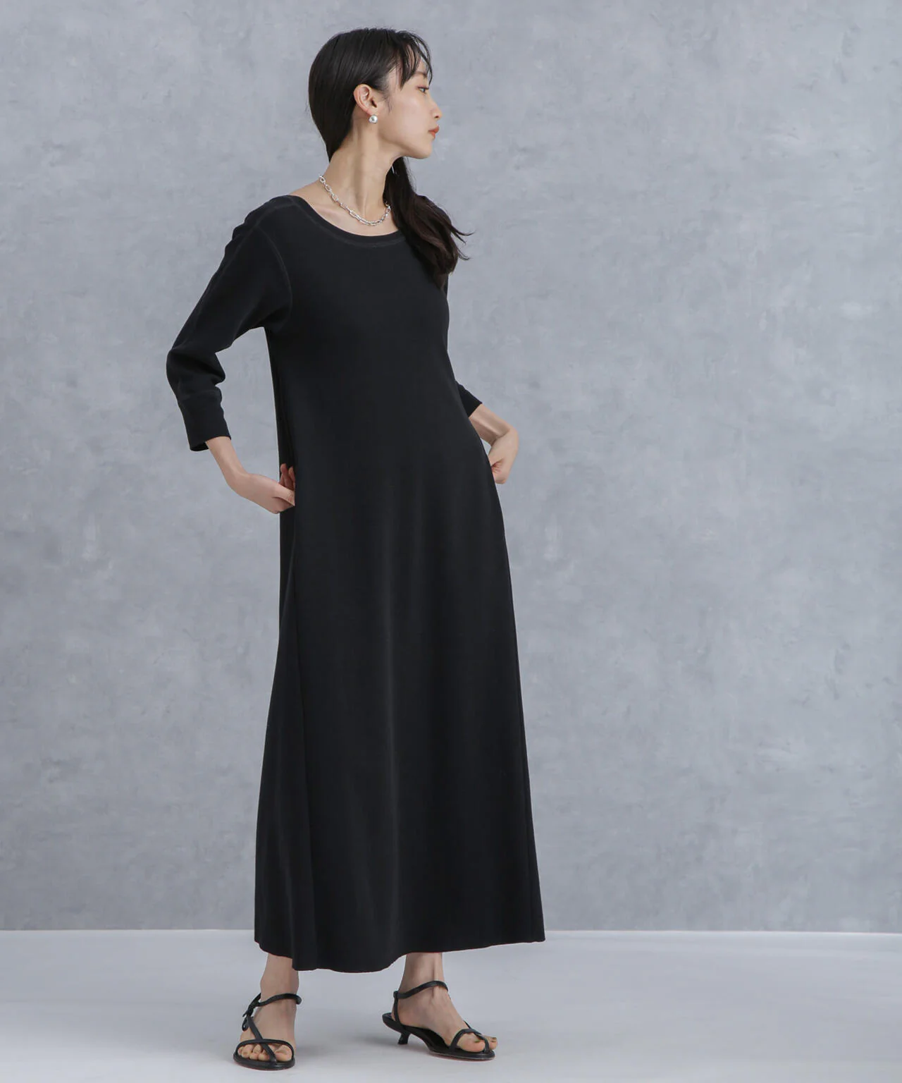一枚でラクチンな着こなしが叶うワンピース。上半身と袖はスッキリとしたデザインながら、スカート部分はカーブラインがとても綺麗なフレアシルエットが魅力。シンプルなルックスながらレースアップのバックデザインが特徴で、ポケット付きなのも嬉しいポイント◎。カットソーの着心地はそのままに、ラフになりすぎないようキレイめな素材で仕上げた大人カジュアルに重宝するアイテムです!