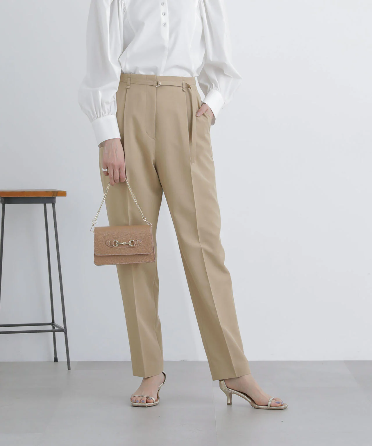 -70%ライトファンクション ベルト付きタックテーパードパンツ(セットアップ可)—