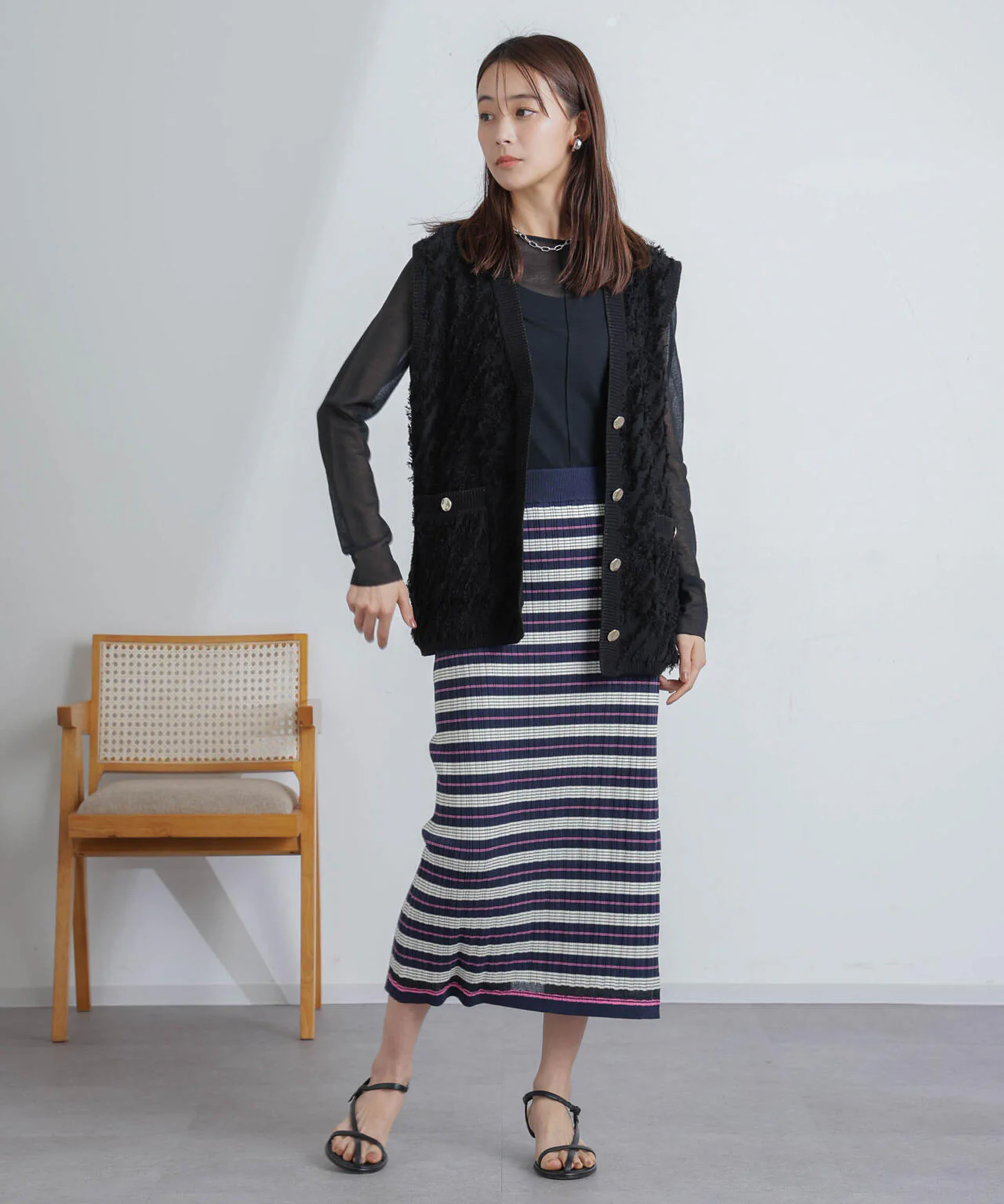 ・大人カジュアルに仕上がるカラーリングと細ボーダーの柄