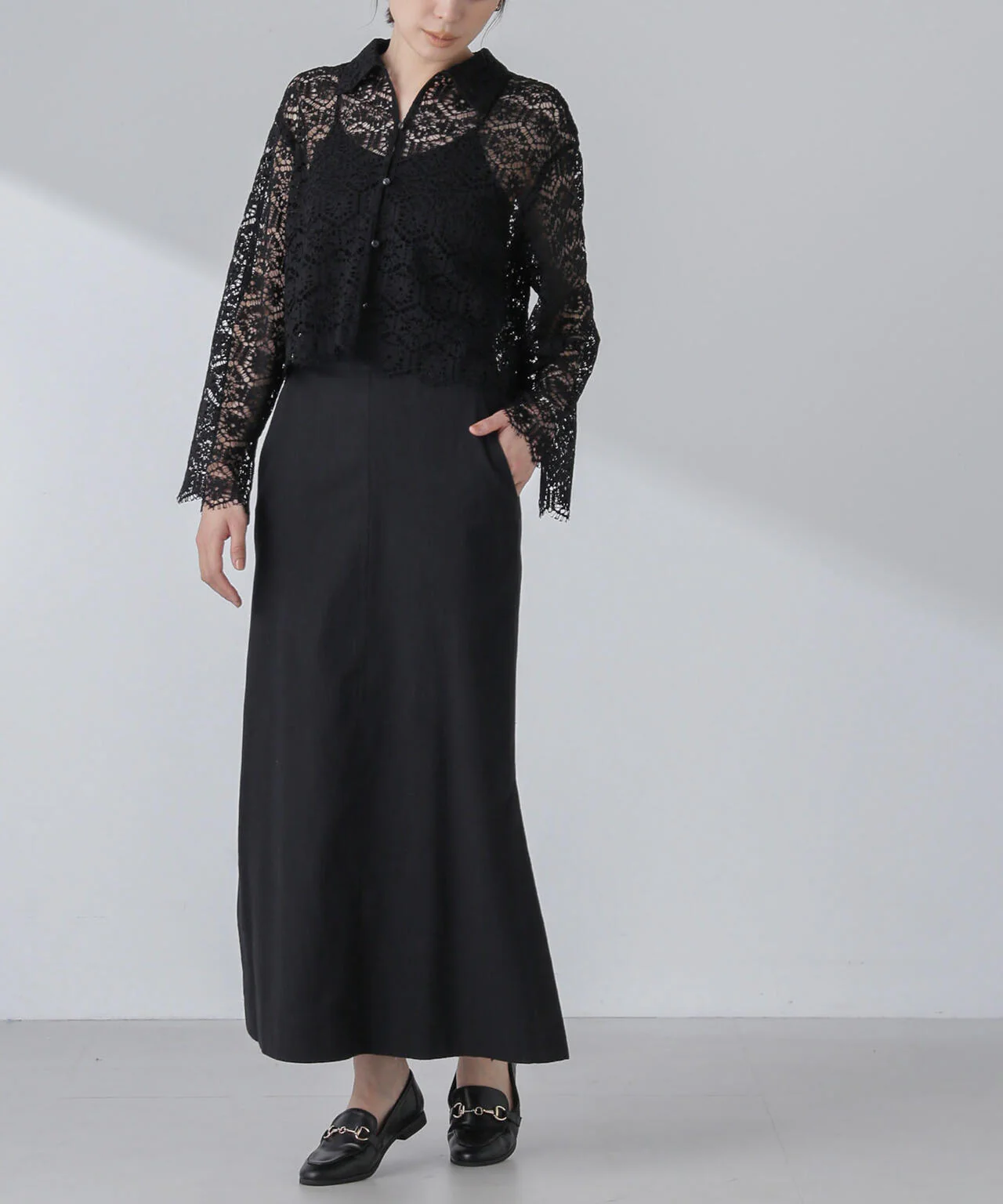 ・大人っぽい印象に仕上がる裾にかけて絶妙に広がった縦長シルエット