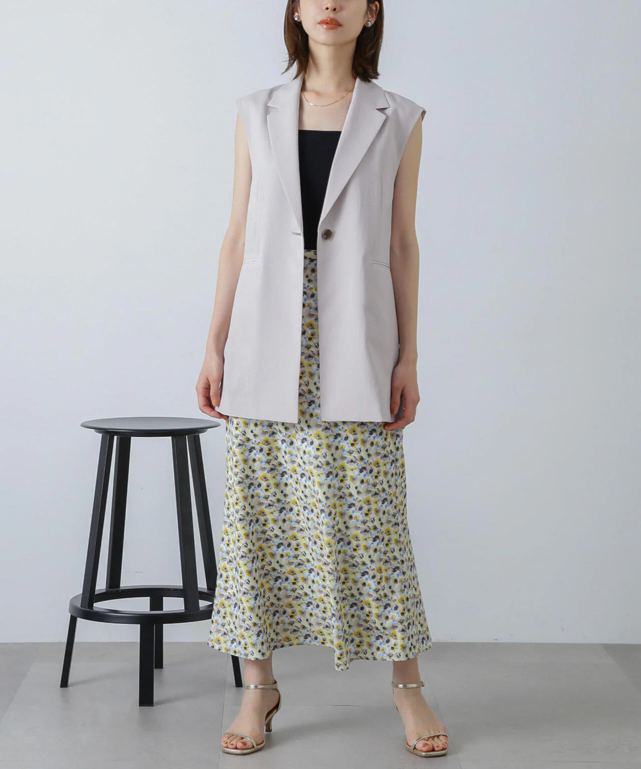 ナノユニバースオリジナルのボカシ柄をプリントしたスカート。バイアス取りでしなやかな落ち感をつくったロングナローシルエットが、動くたび女性らしくエレガントに揺らめきます。1枚で華やかな印象なので、シンプルなTシャツやブラウスに合わせるだけで着こなしが決まるアイテムです。