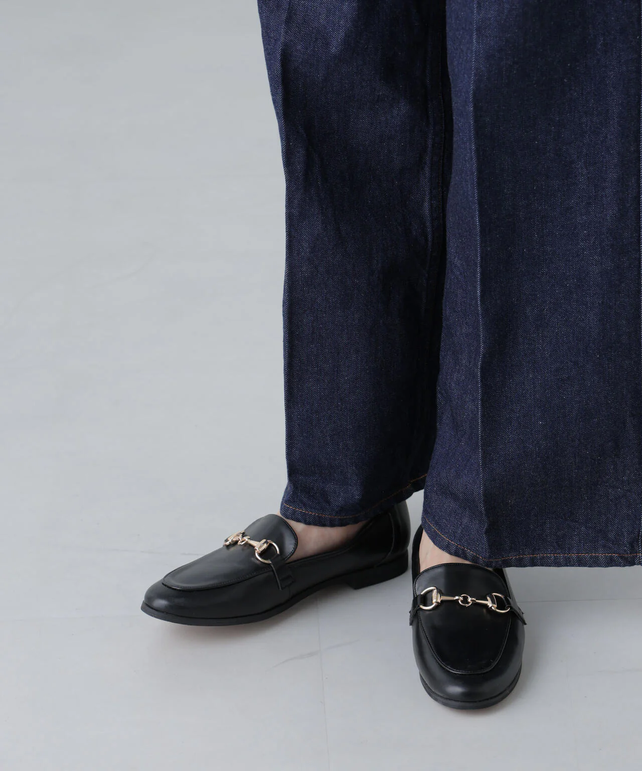 ビットデザインがクラス感を演出する上品なローファーパンプス。少し柔らかなフェイクレザーをセレクトして、今っぽい抜け感を出せるラフなルックスに仕上げました。シアーソックスなど合わせる見せ方もおすすめで、デニムにソックス+ローファーで足元に遊びを入れても素敵です。