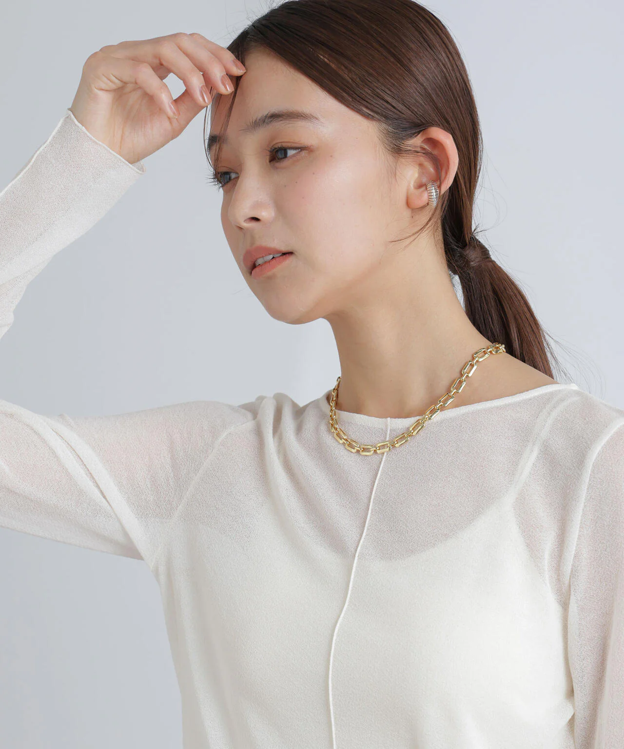 ヴィンテージライクな少し太めのチェーンが首元をキラッと華やぐネックレス。やや重みを感じるような膨らみのある立体的なチェーンが高見えするデザイン。カットソーやプリントTなど、あえてカジュアルなアイテムと合わせるスタイルも今年らしくておすすめです。