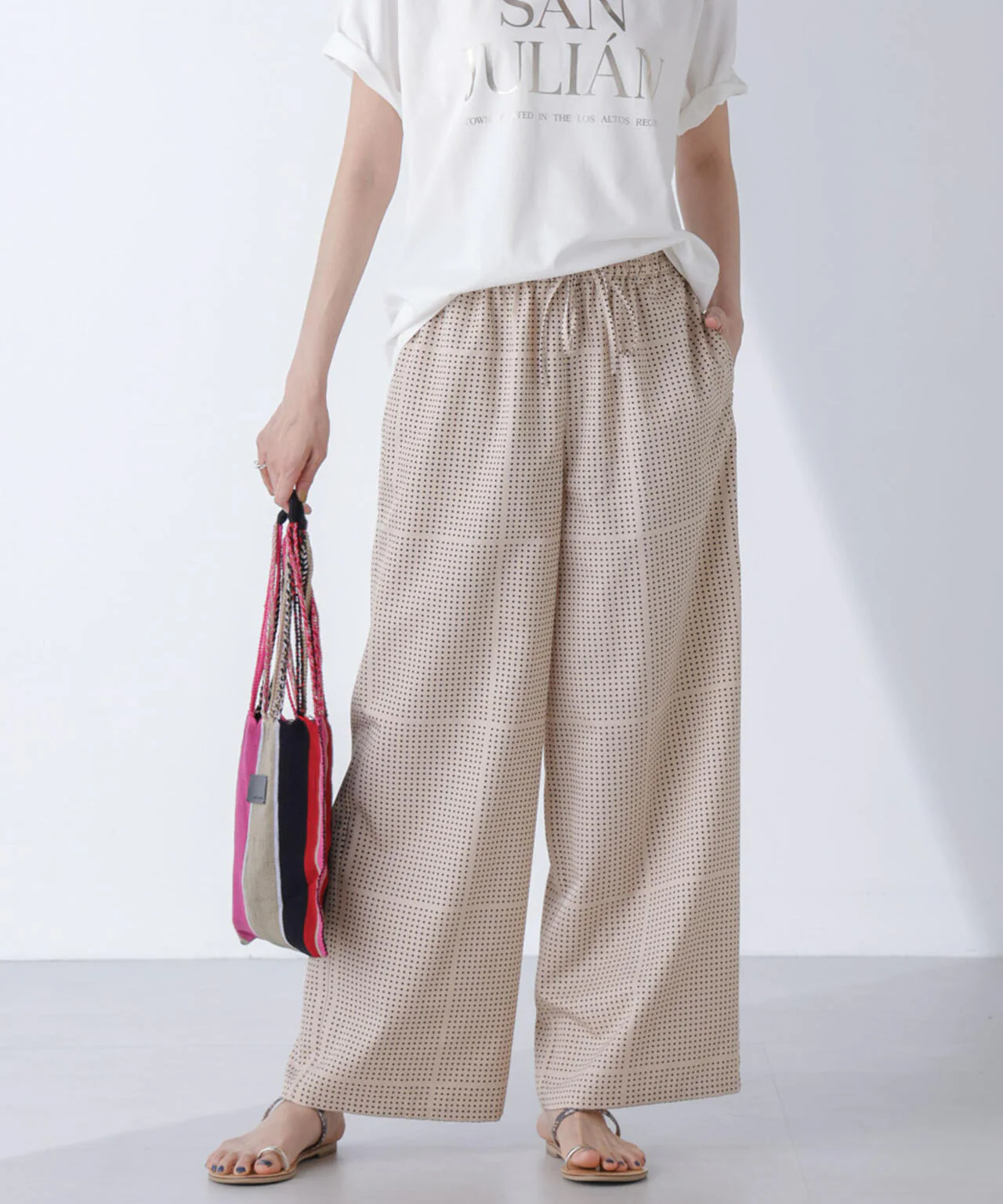 ・オリジナルのパネルドット柄をプリントしたリラックスパンツ