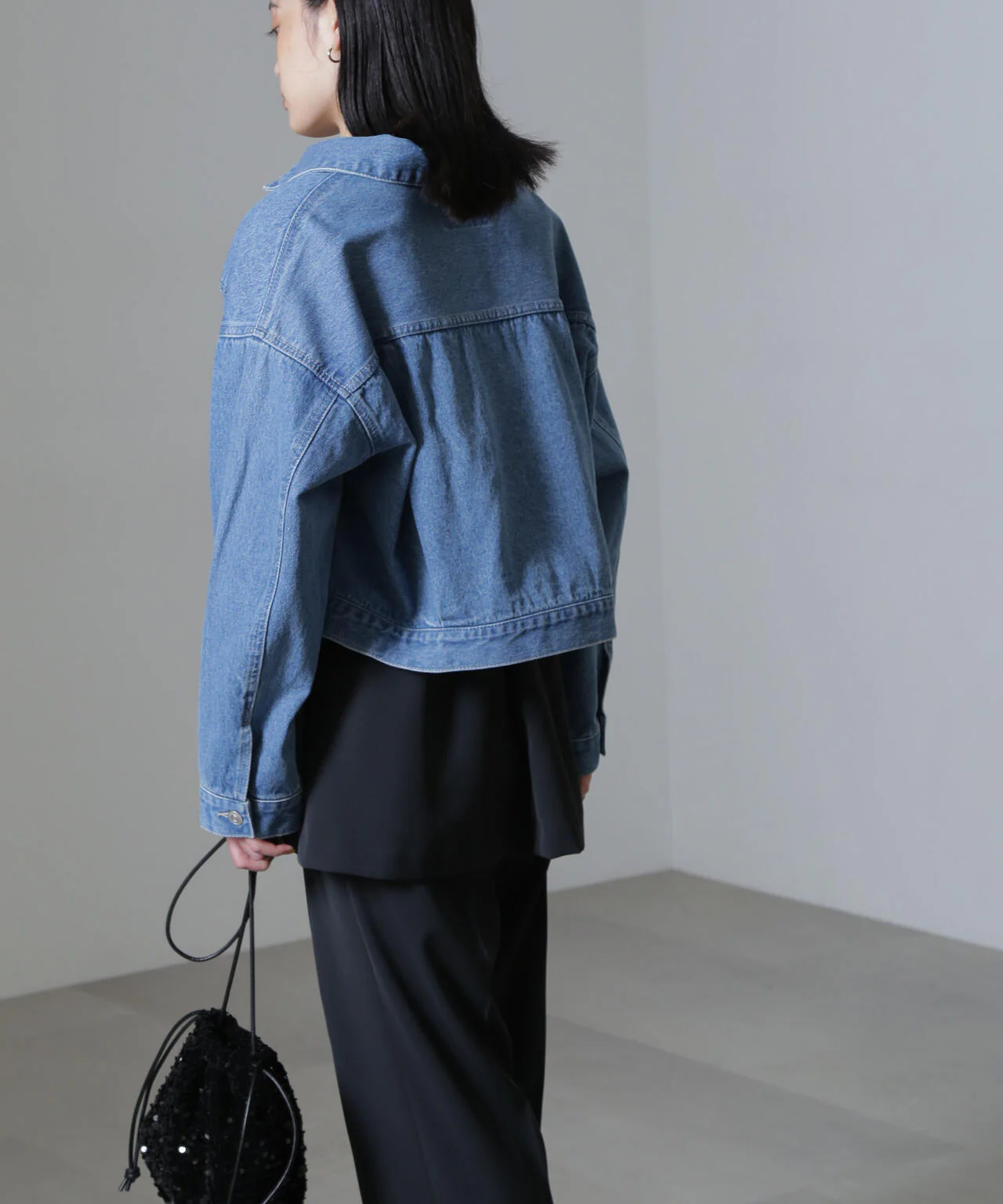 ・丸みのあるシルエットで女性らしい雰囲気のデニムジャケット